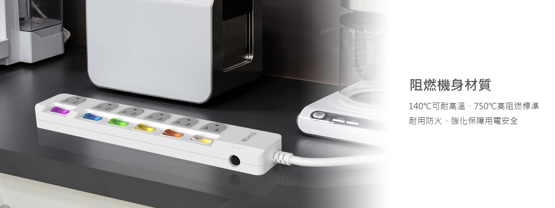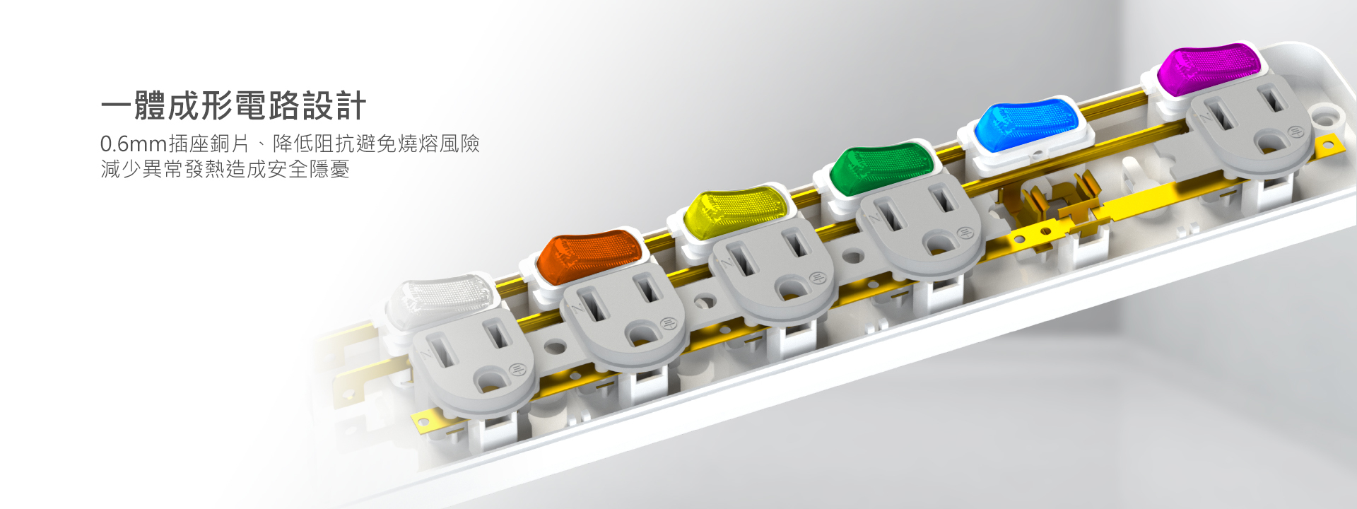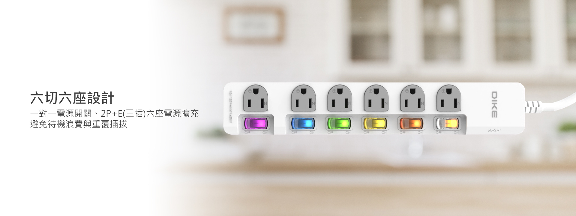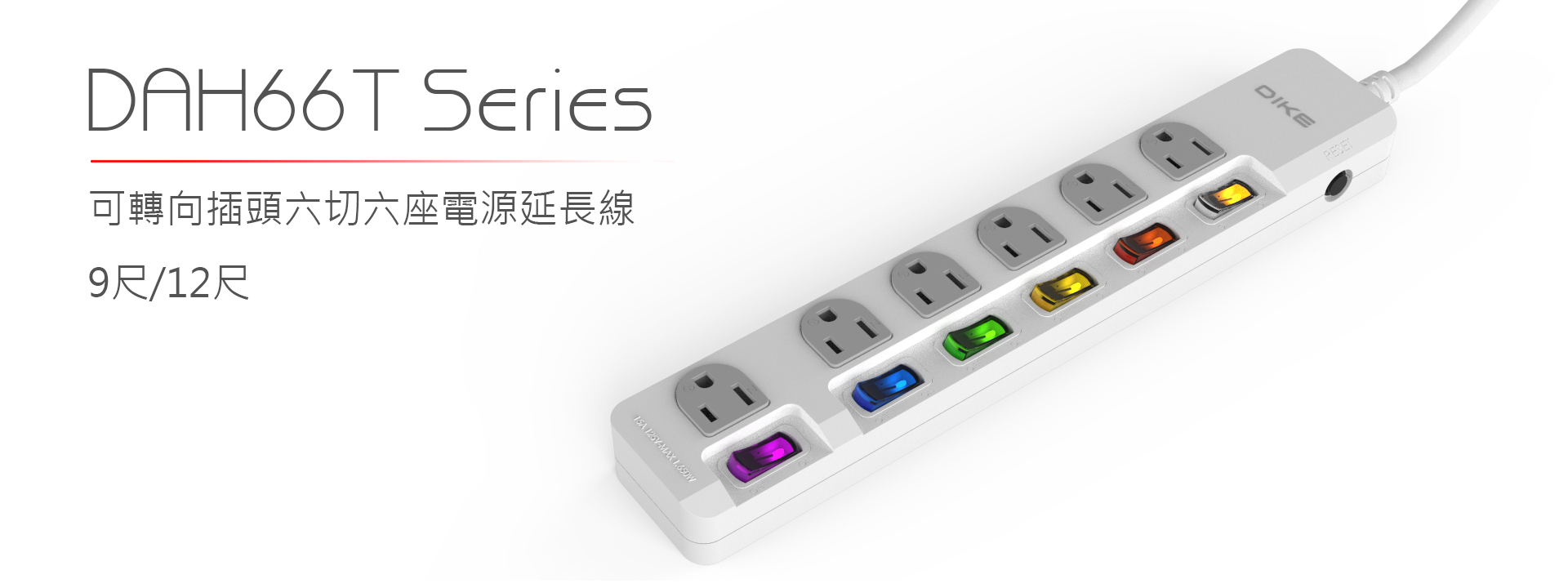 六切六座電源擴充、180度可轉向插頭。台灣製造。BSMI新版安規認證,多重防護、過載斷電。獨立開關斷電,阻燃防火機身,用電更安全