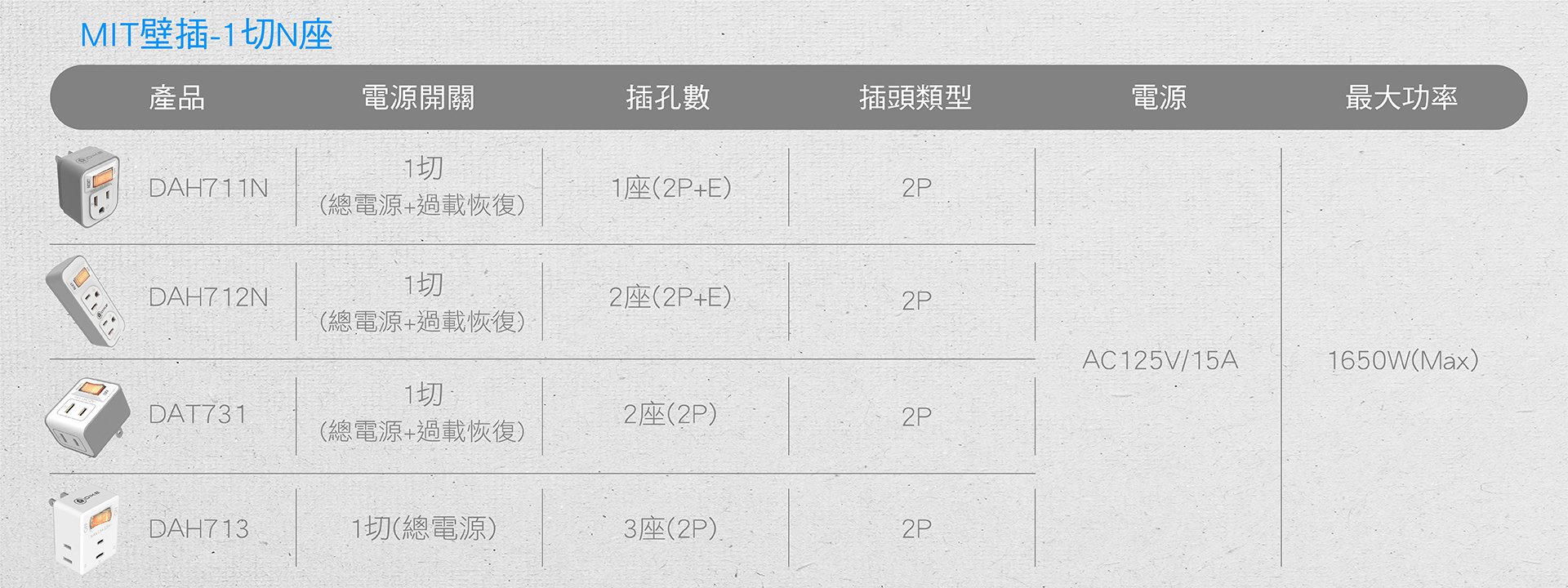 DAH711N 1切1座3轉2安全加強型節電小壁插