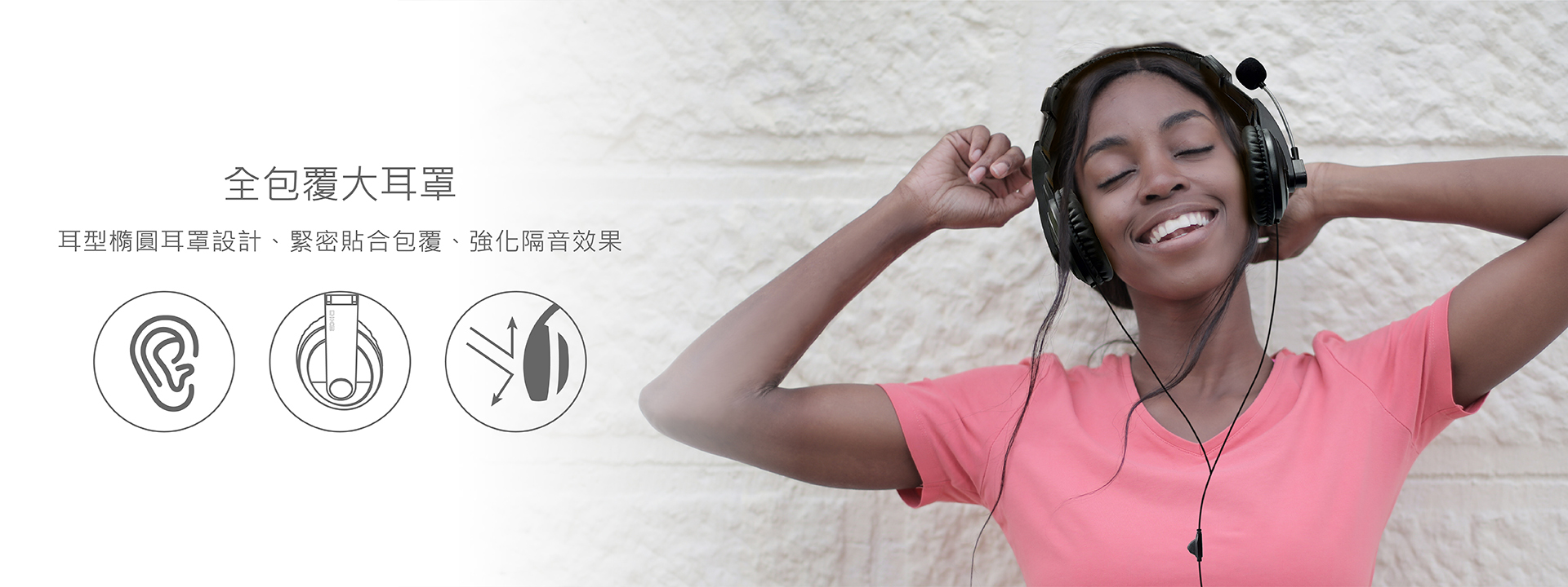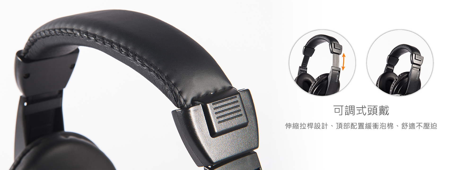 銣鐵硼大單體強勁音效、金屬蛇管麥克風清晰收音。全包覆大耳罩、可調式緩衝頭戴,搭配線控音量調整,舒適配戴/使用細節。