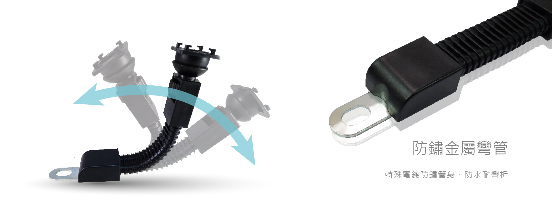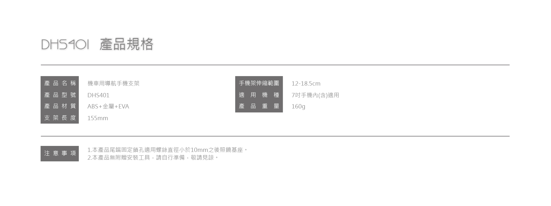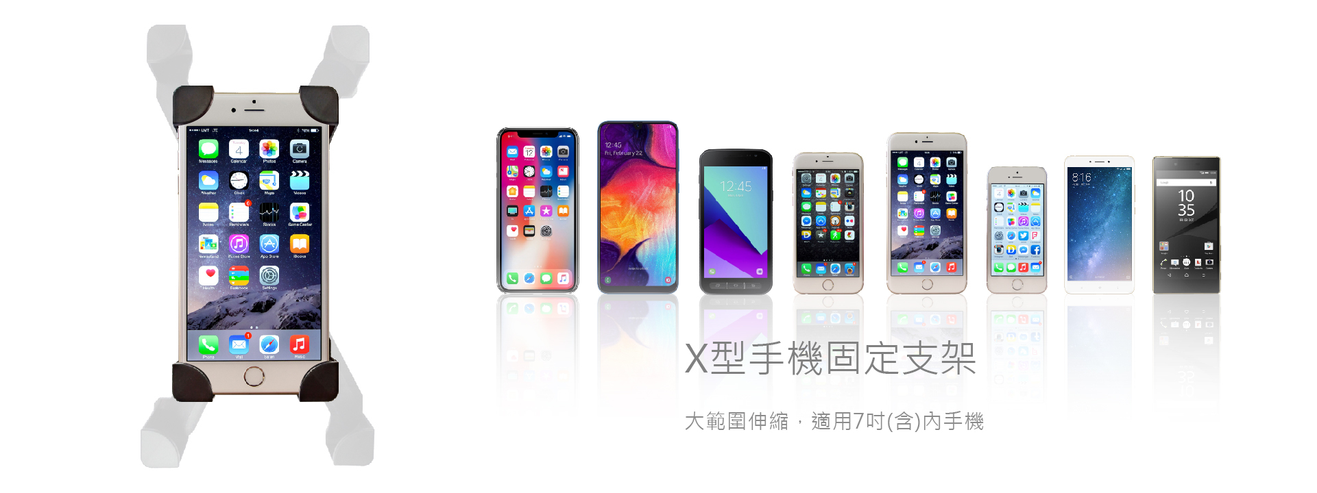 最佳騎車導航幫手,後視鏡安裝設計,視線同步、兼顧行車安全。特殊電鍍防鏽管身,防水耐彎折。X型勾爪固定手機架,便利拿取,適用7吋(含)內手機。