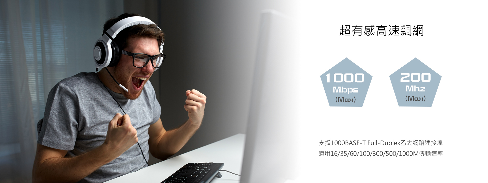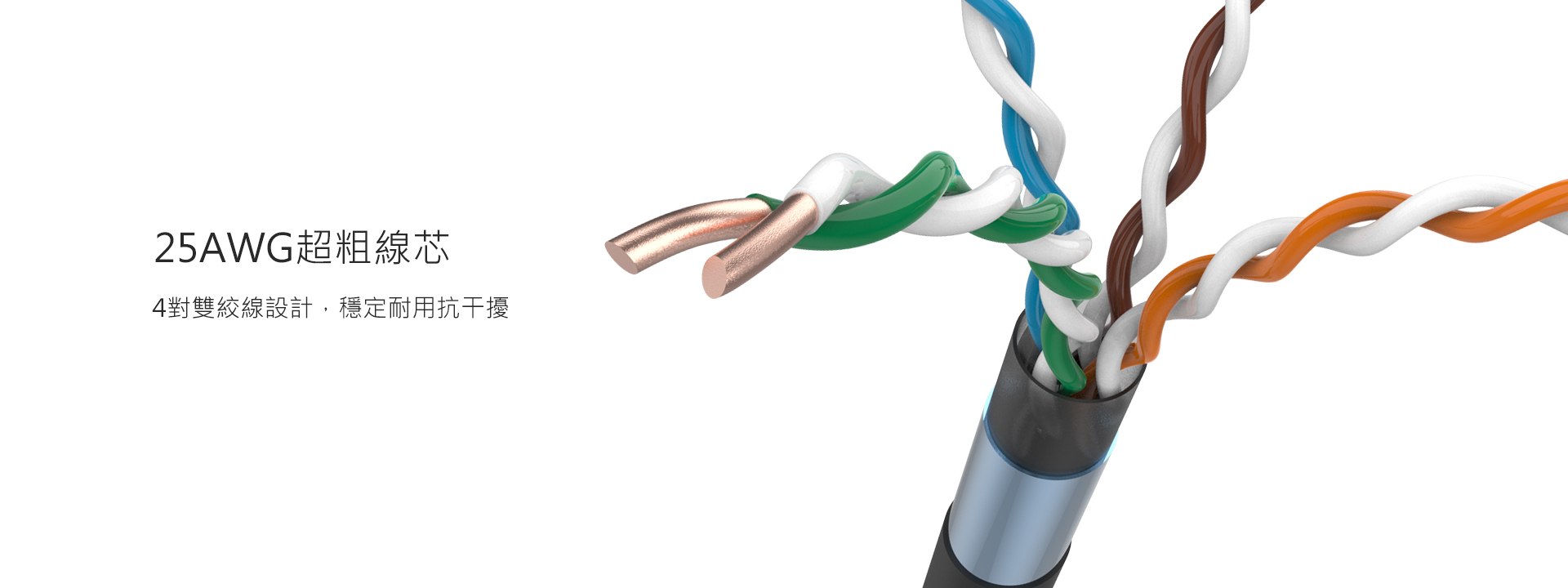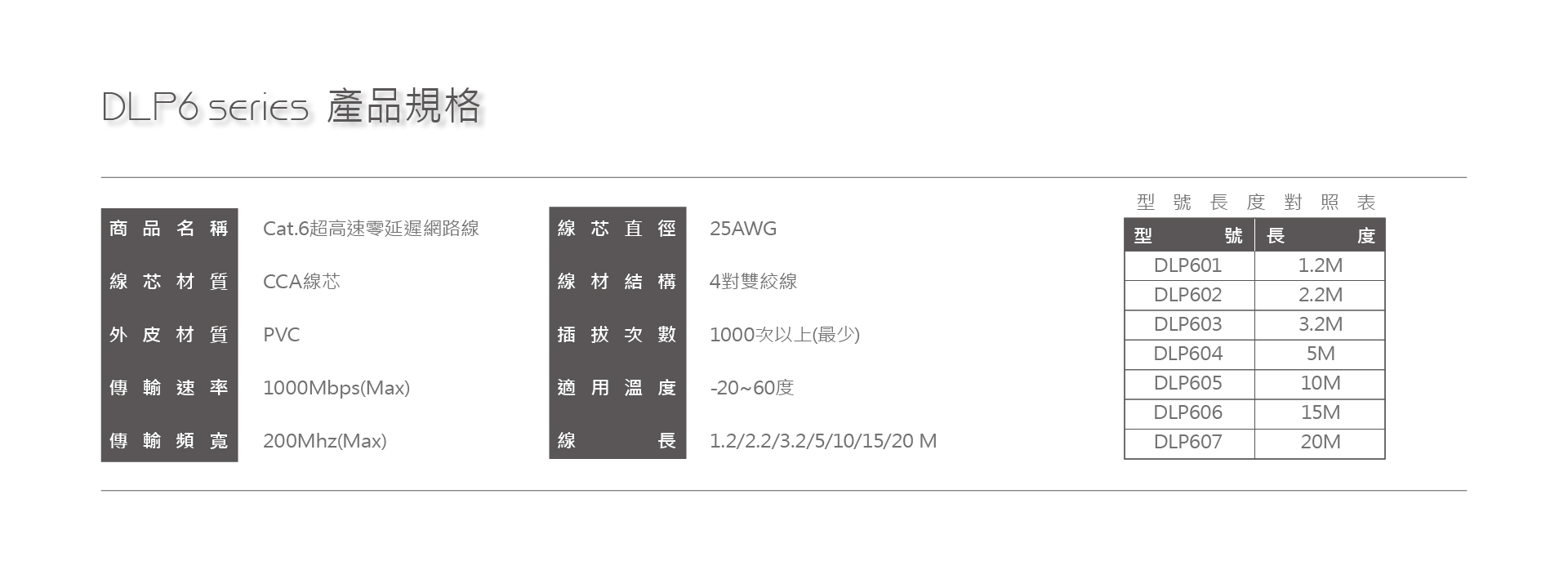 1000Mbps/200Mhz超高速傳輸,四對25AWG超粗線芯,適用PC/ADSL/路由器/集線器...等設備。彈力式壓板、耐燃PVC包覆、接點鍍金,優化使用細節。
