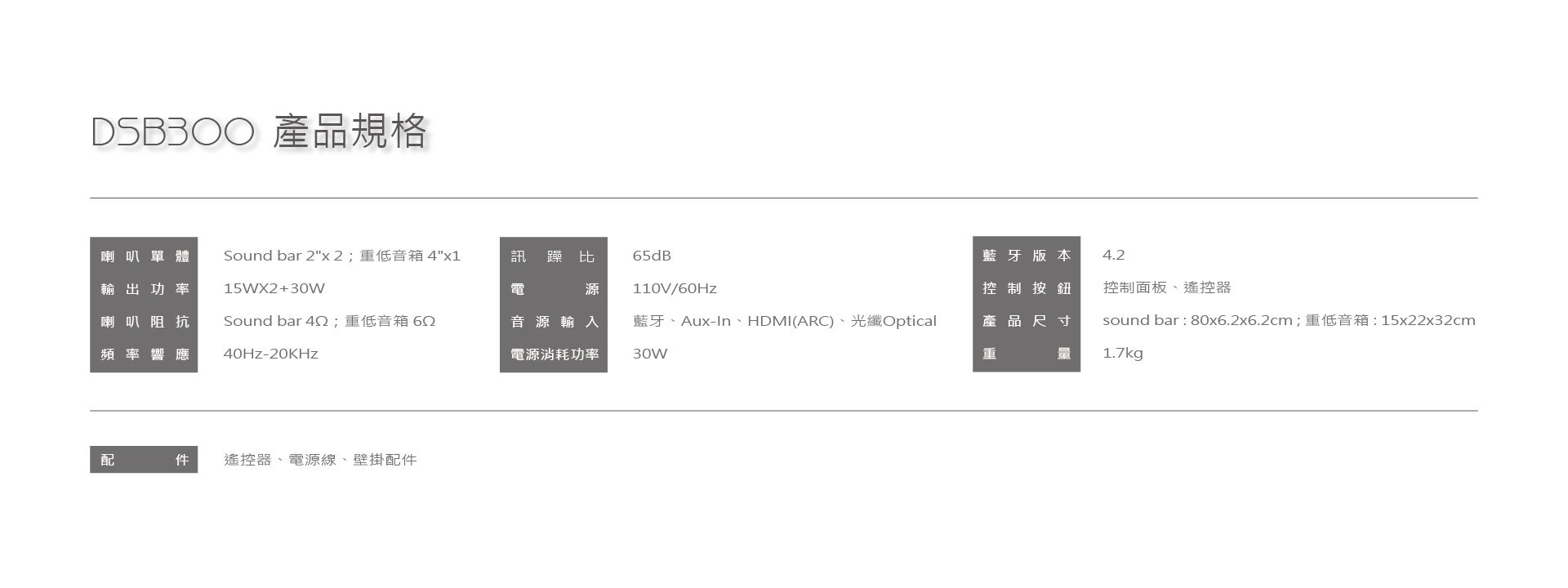 DSB300 2.1聲道藍牙家庭劇院環繞聲霸