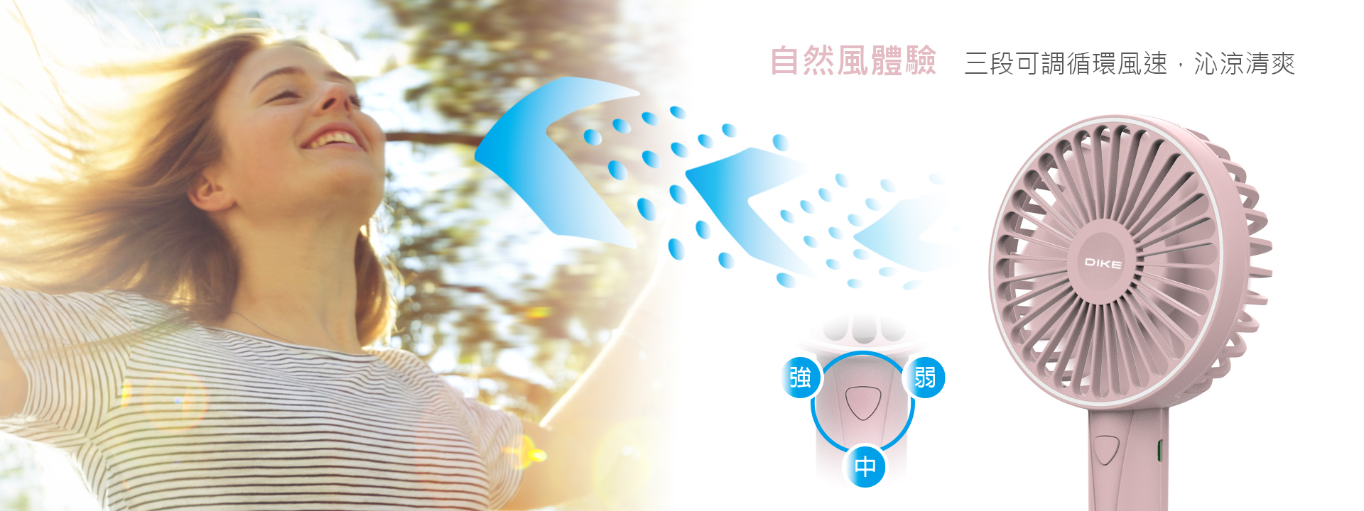 手持/立式雙用設計,模擬自然風吹拂;曲面大扇葉、靜音馬達、三段循環風速,涼感集中強勁;大電量高續航,嚴格安全把關,自在安心涼感體驗