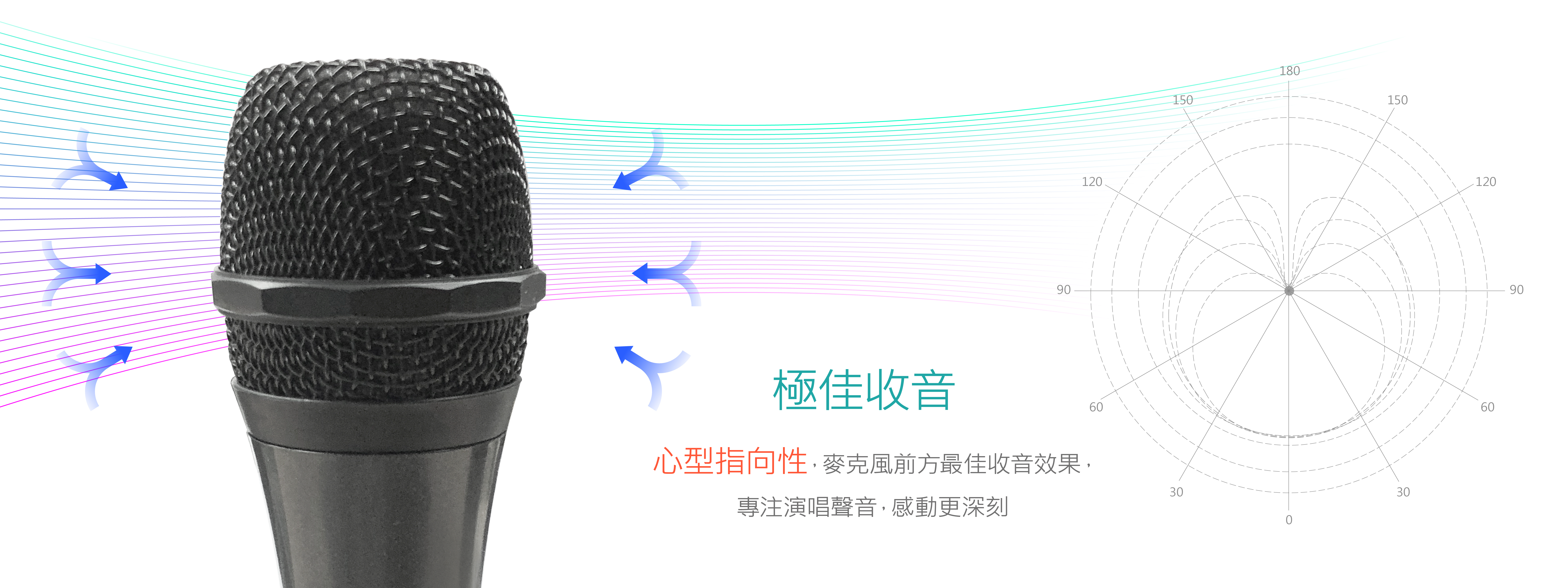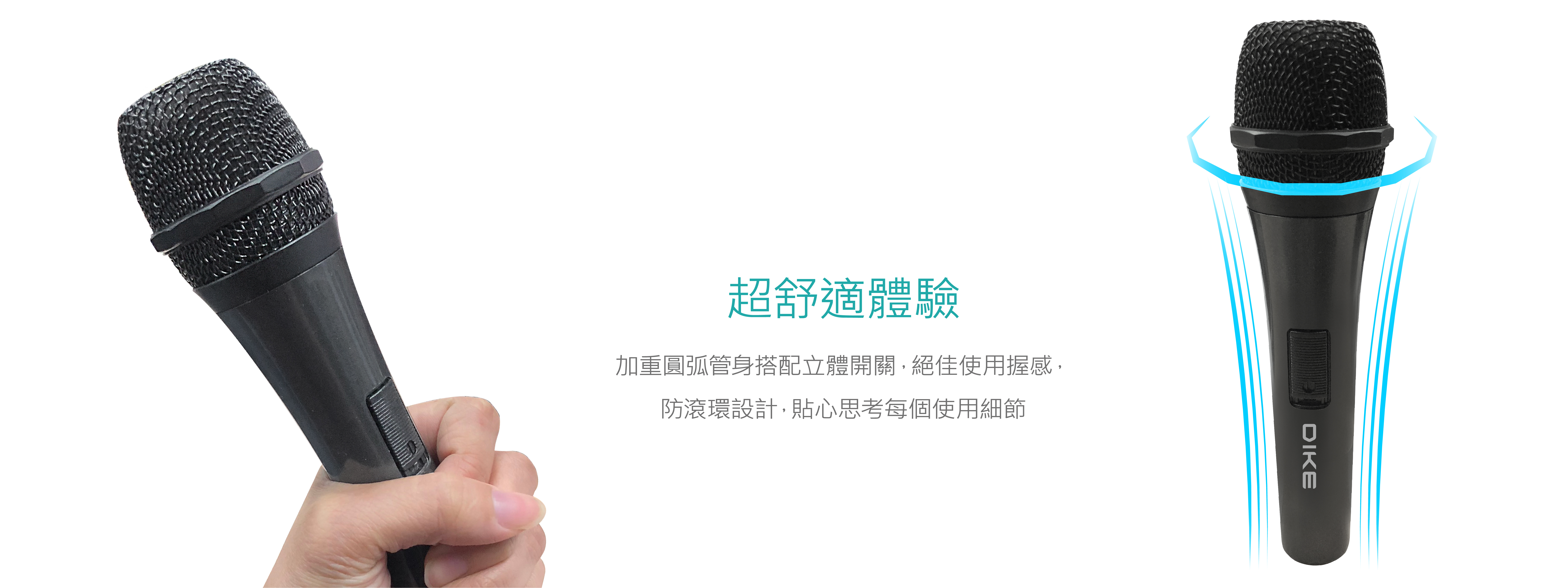 專業動圈式麥克風,極佳收音效果,流線均衡加重管身握感舒適,立體大開關/防滾環設計,專注細節、完美豐富歡唱體驗。