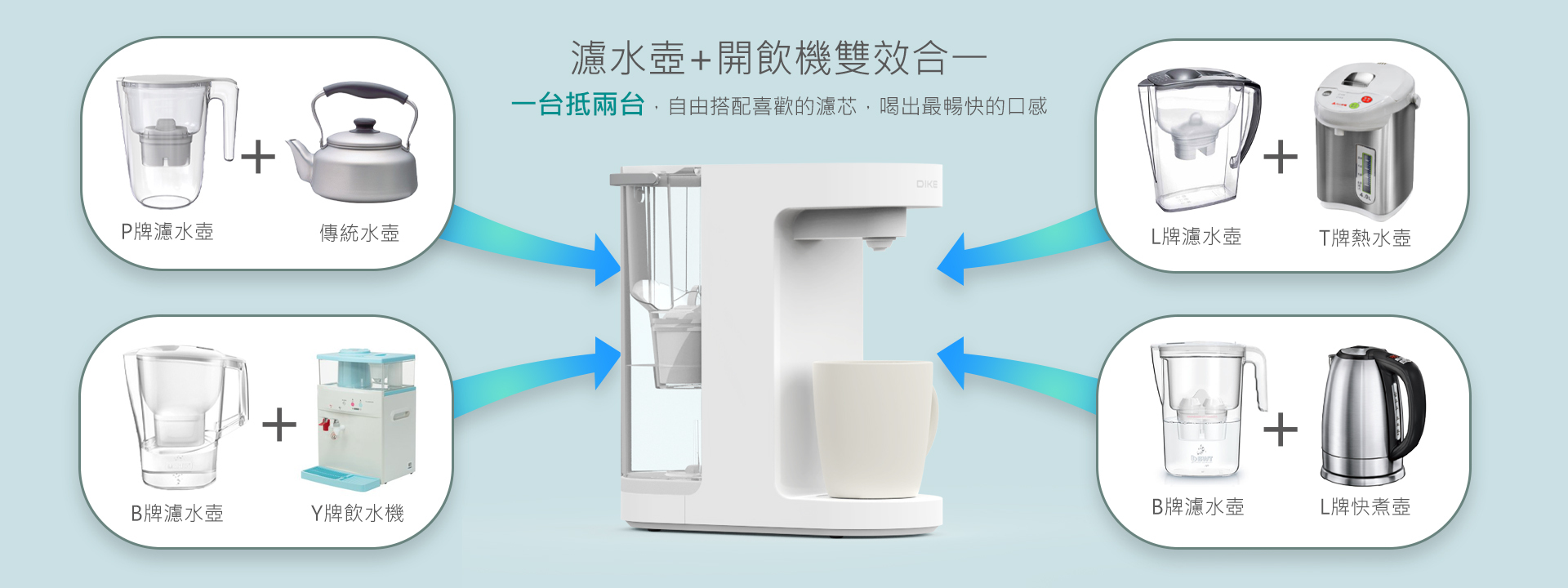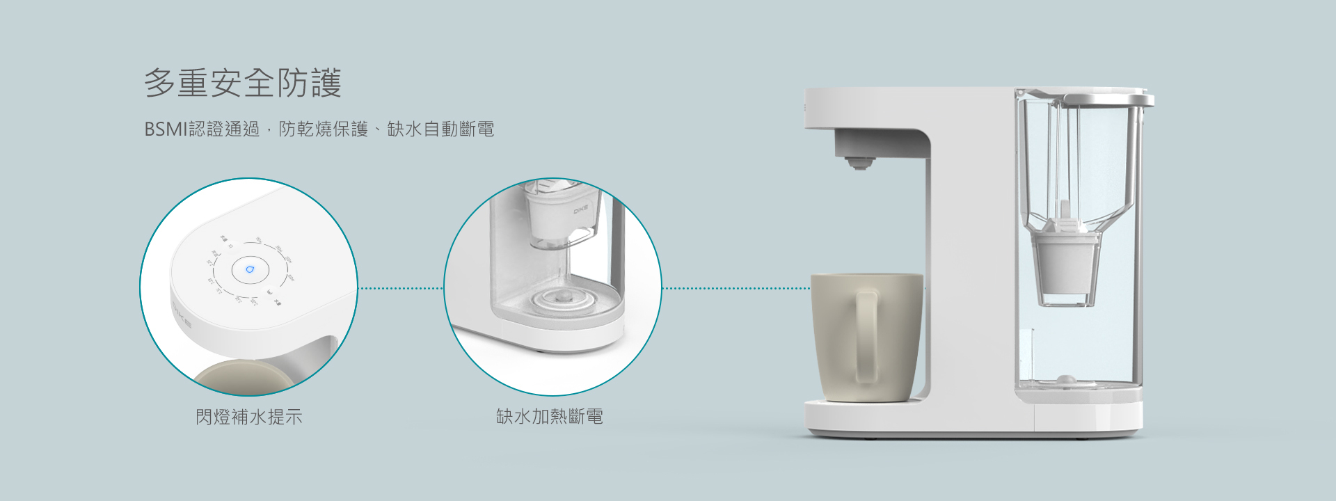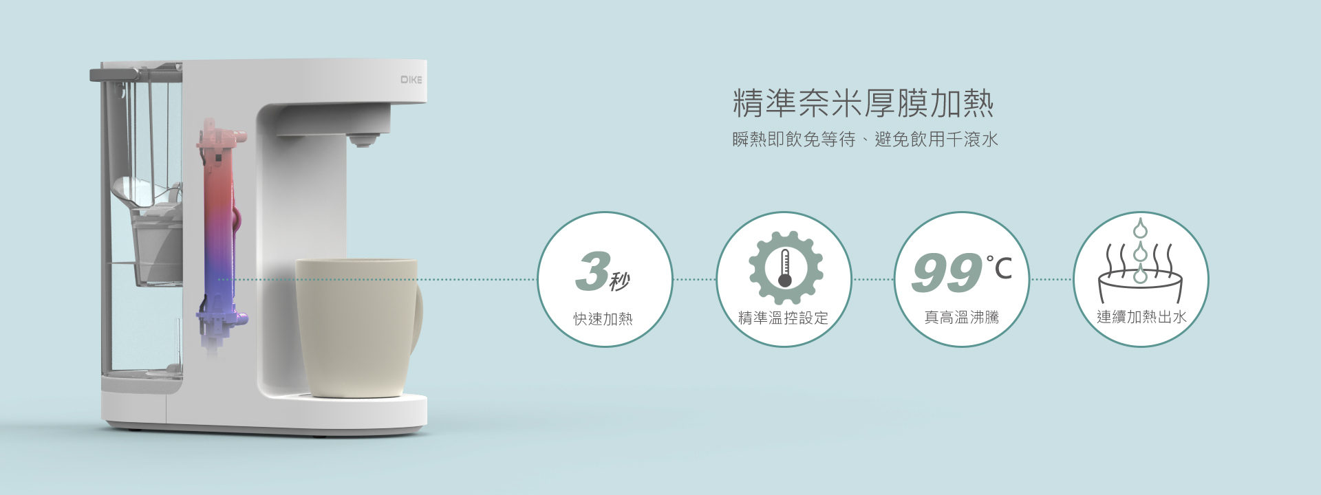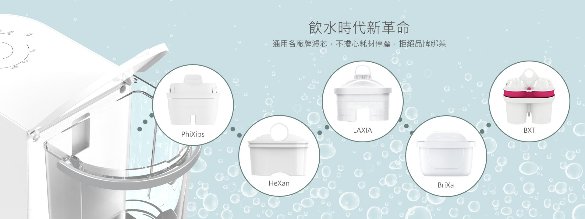 飲水時代新革命,真正通用內托設計,百搭各品牌濾心,完整過濾玲滲漏。3秒加熱出水,健康喝避免千滾水危害。多段水溫/水量設定,3L大水箱,滿足各式生活飲水需求