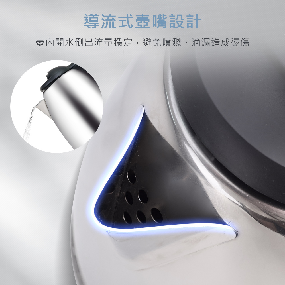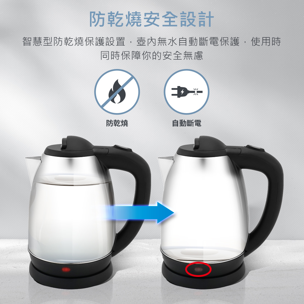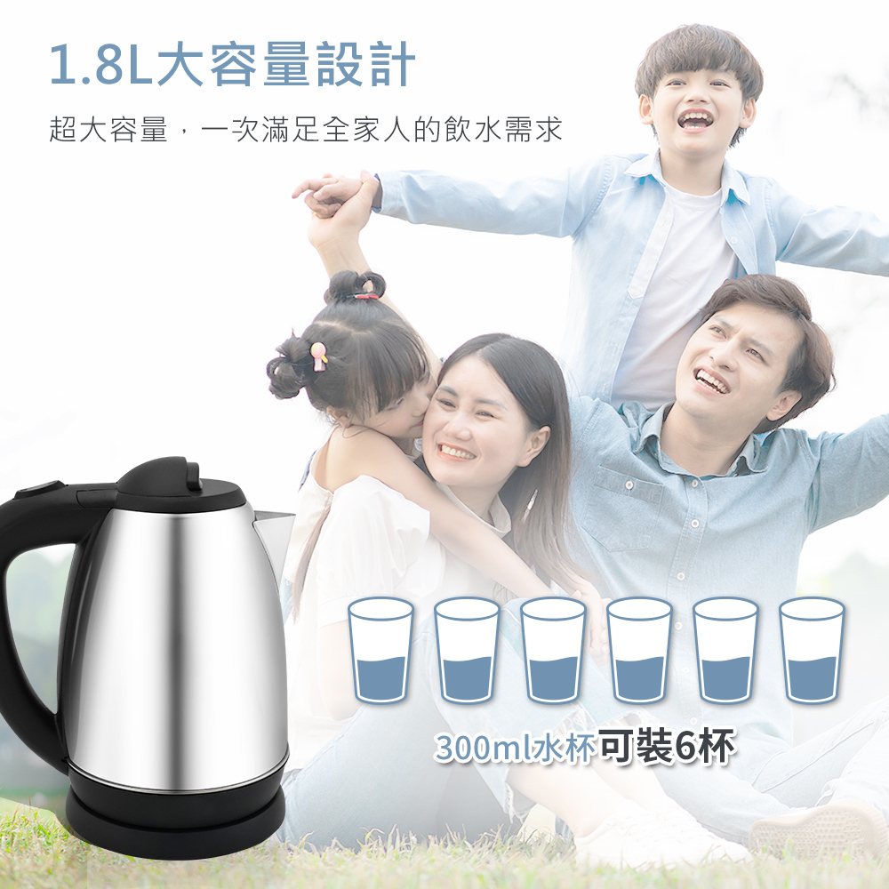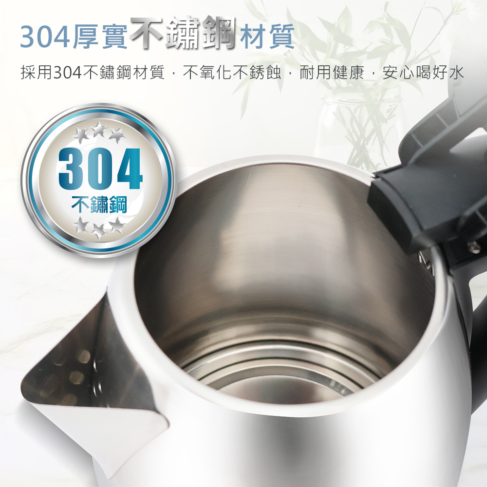 通過BSMI檢測,及使用304不鏽鋼壺不氧化不銹蝕,配置1000W大功率快速加熱,短時間即可煮沸,省時省能源,並搭上防乾燒保護裝置,使用上同時保障你的安全無慮。讓您喝的安心用的放心。