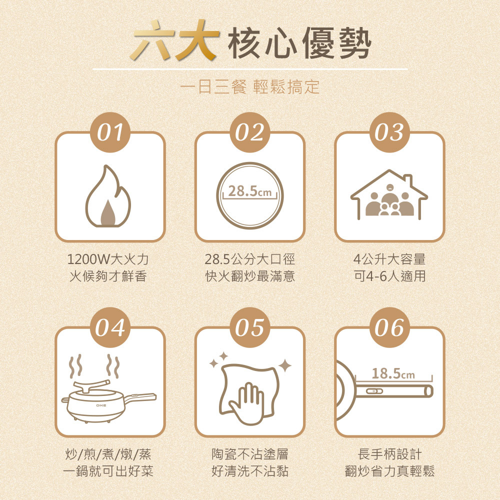 六種烹煮模式 一鍋搞定,1200W大火力 ,二段火力調節