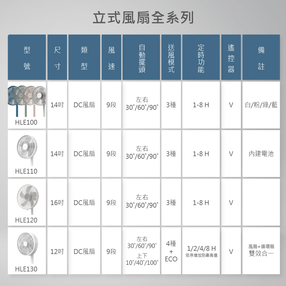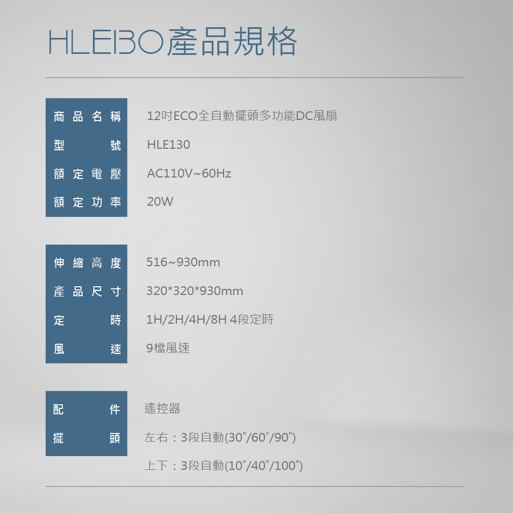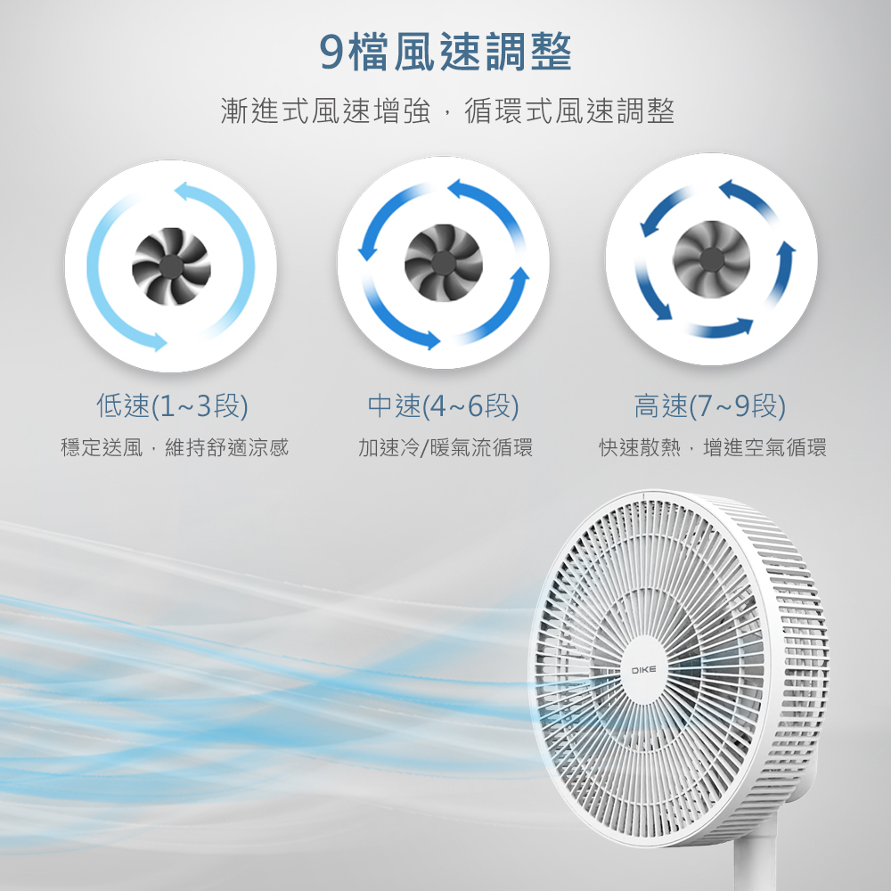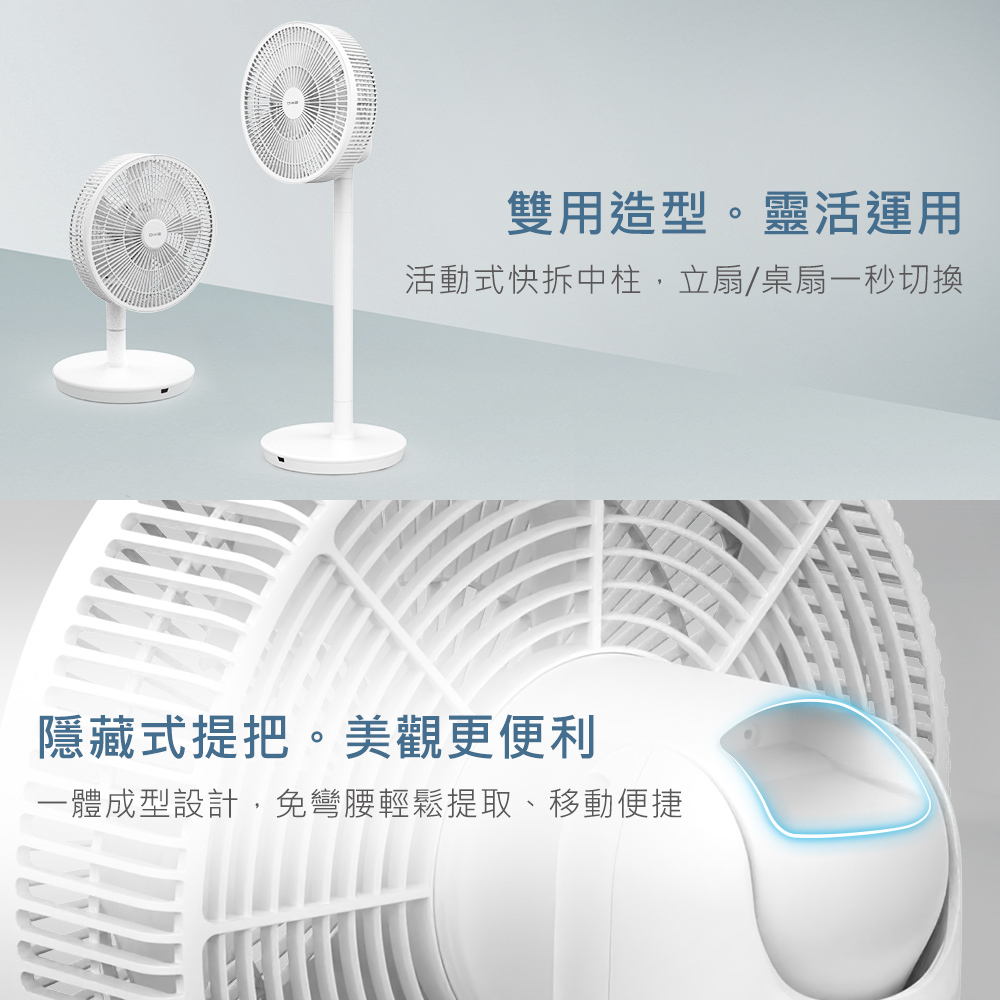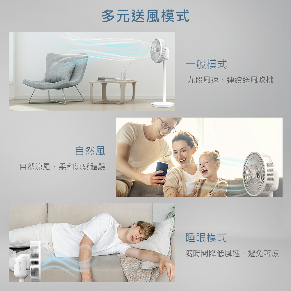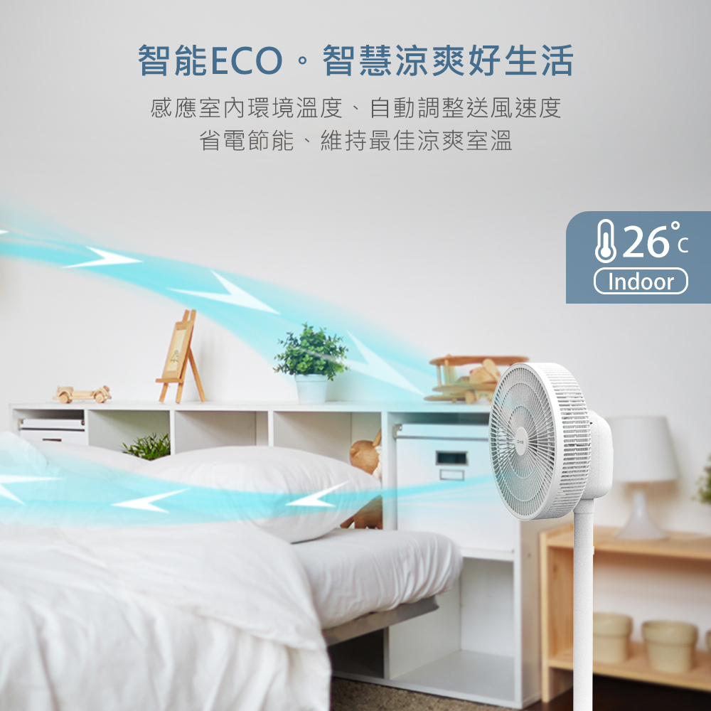 新一代直流電機使用、性能穩定低噪音,強勁送風。智能ECO 智慧,感應室內環境溫度、自動調整送風速度。9段風速、3D自動擺頭,涼爽送風無死角、多段定時開關機;雙用造型,立扇/桌扇一秒切換,使用多元、專注細節,滿足使用體驗