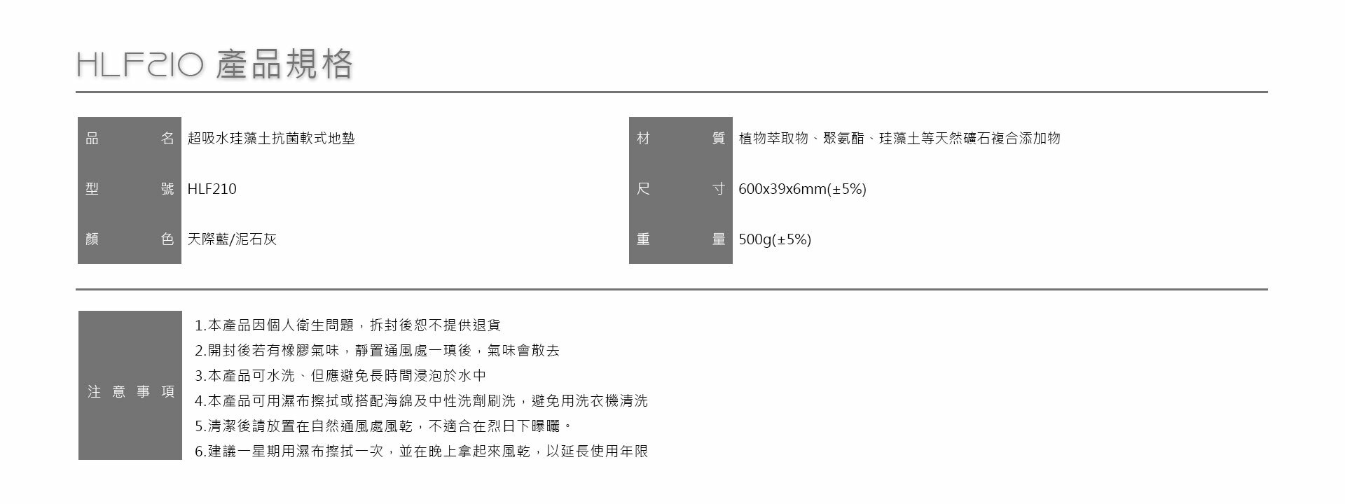 HLF210 超吸水珪藻土抗菌軟式地墊